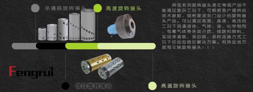非標旋轉接頭:高壓旋轉接頭、高速旋轉接頭、高溫旋轉接頭、多通路旋轉接頭(可以根據(jù)流通介質、技術參數(shù)、實際工況和連接方式結合實際情況綜合分析,選擇匹配適用的密封結構、密封件組合和使用材質進行非標異型設計,補足標準旋轉接頭在更為復雜的技術參數(shù)下的實際應用,可以實現(xiàn)在高溫、高壓、高轉速的情況下多種、多通路、多標準的流通水、氣、油和物料的動態(tài)密封,提高旋轉接頭的抗腐蝕性、抗疲勞性和適用性)